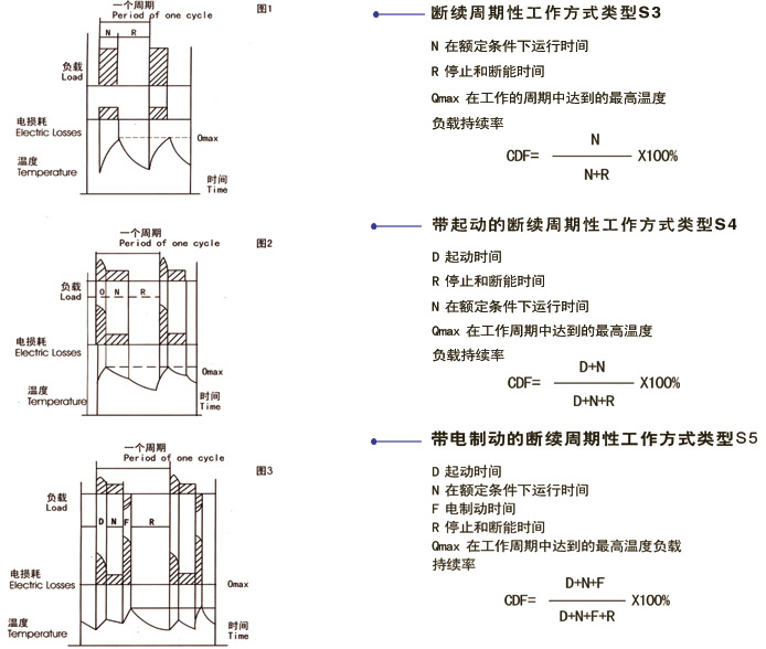 2.2.1 斷續周期性工作制(S3):是一系列相同的工作周期,每一周期包括一段恒定負載運轉的時間和一段停止并斷能的時間